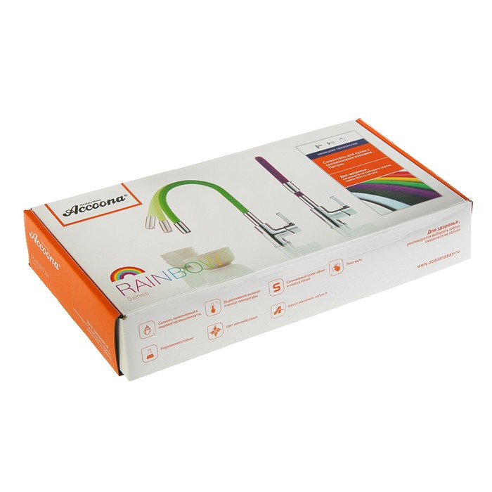 Смеситель Accoona A9890M дополнит вашу кухню. Он имеет рычаг переключения и силиконовый изгиб, положение которого вы можете менять в зависимости от предпочтений. Устройство изготовлено из латуни, поэтому прослужит долгое время.