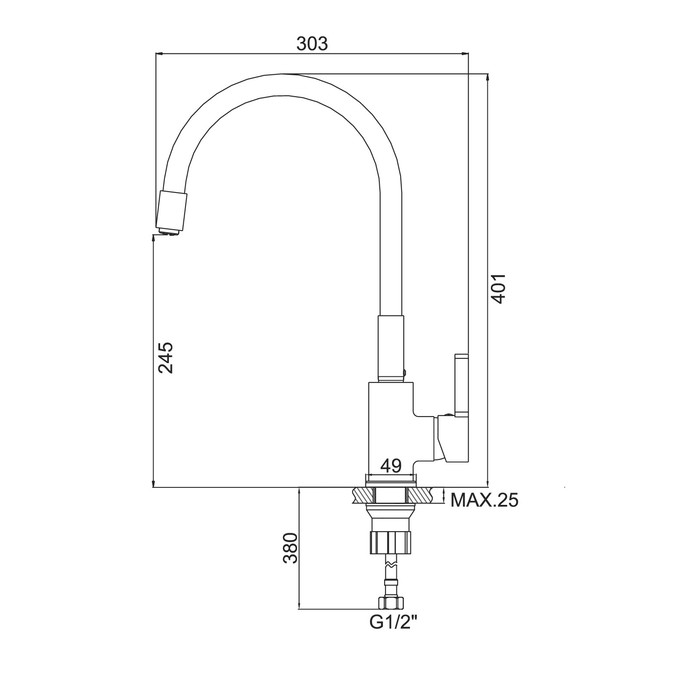 Длина излива, мм: 300