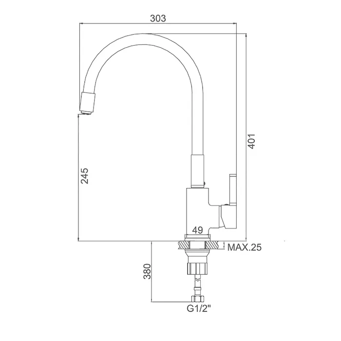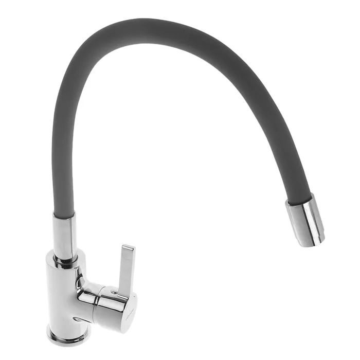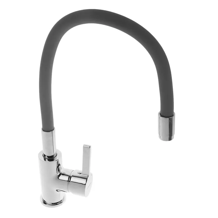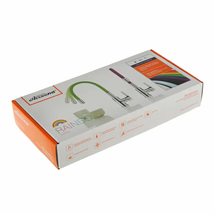 Смеситель для кухни Accoona с силиконовым изливом изготовлен из латуни с хромированным покрытием. Имеет высокий поворотный силиконовый излив.