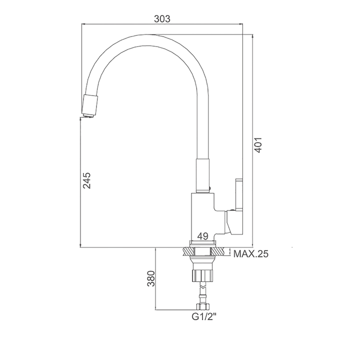 Гибкий излив позволяет расширить рабочее пространство, добраться до всех уголков мойки.