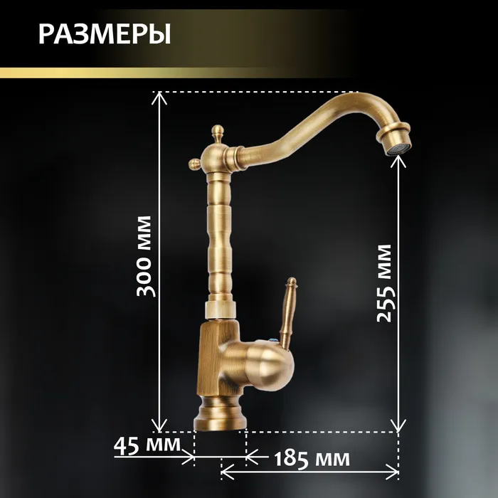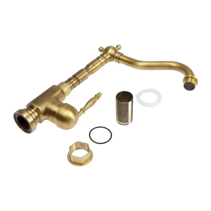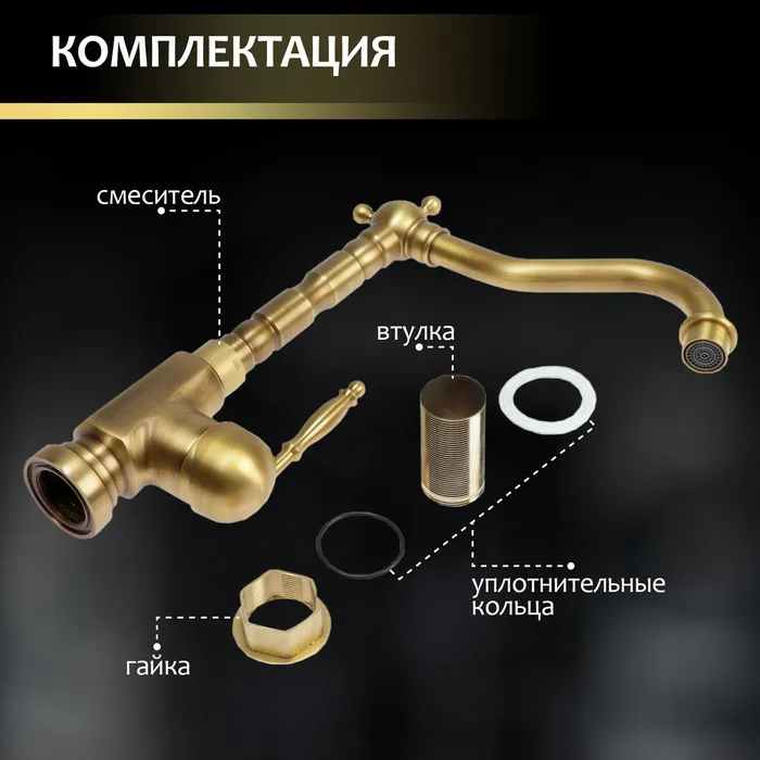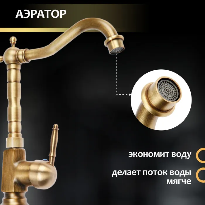 Смеситель для кухни и раковины ZEIN Ретро, высокий излив, без подводки, латунь, цвет бронза — Характеристики