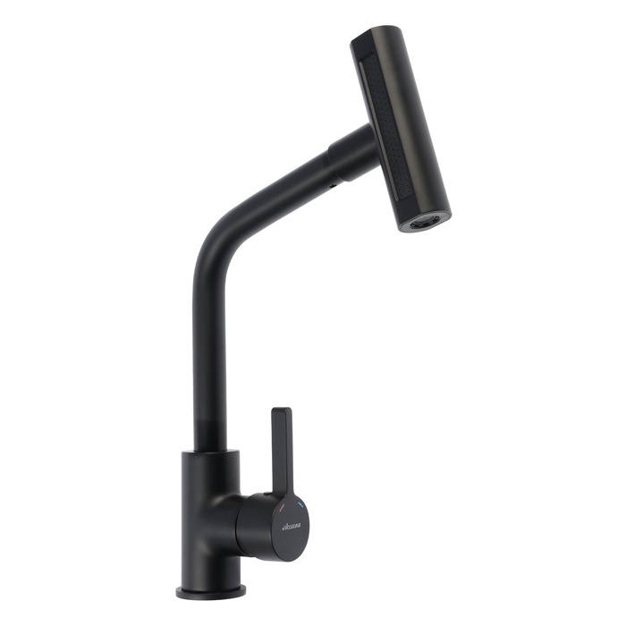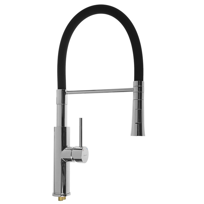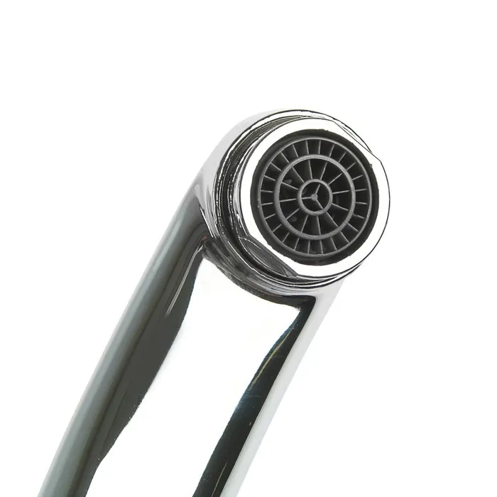 Излив длиной 21 см и высотой от аэратора до уровня мойки 10 см уменьшает брызгообразование. Максимальная высота смесителя с опущенный ручкой - 12,5 см. Картридж металлокерамический 35 мм.