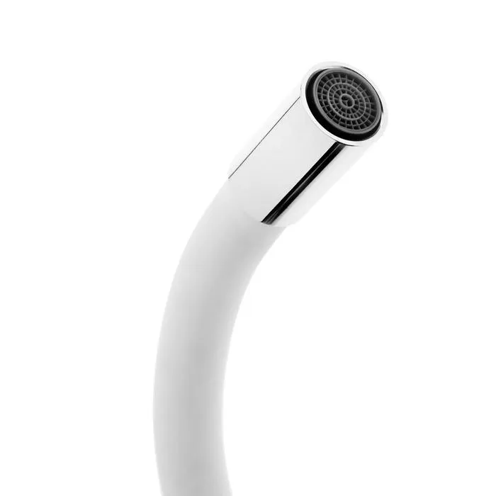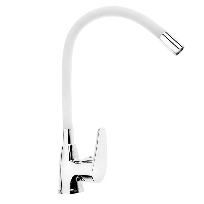 Излив оснащен качественным аэратором с пластиковым сердечником типа "Бенц". Максимальная высота смесителя 24 см. Высота аэратора над уровнем мойки 19 см, что (учитывая глубину мойки) позволяет набирать воду даже в очень глубокие емкости. Межцентровое расстояние корпуса и аэратора 22-25 см в зависимости от расположения корпуса - ручкой сбоку или ручкой спереди.