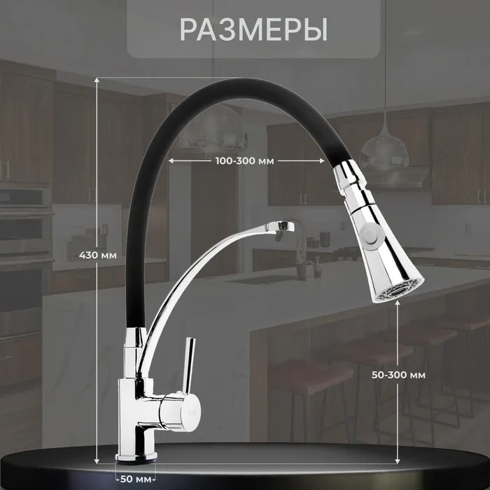 Смеситель для кухни ZEIN, гибкий излив, картридж керамика 40 мм, латунь, хром/черный — Характеристики