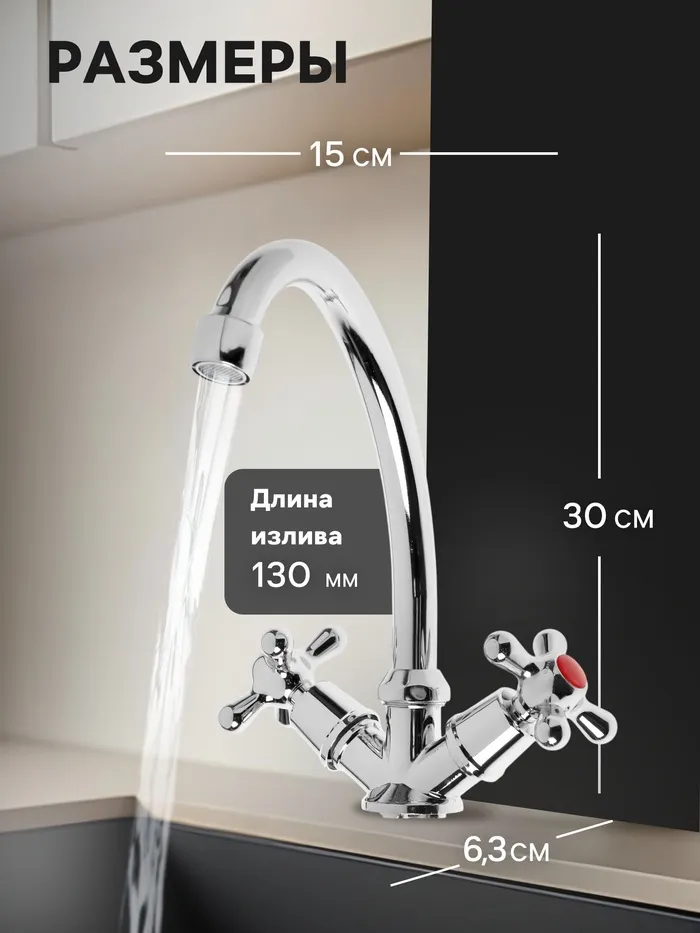 Смеситель для кухни ZEIN, кран-букса пластик 1/2", без подводки, хром — Характеристики