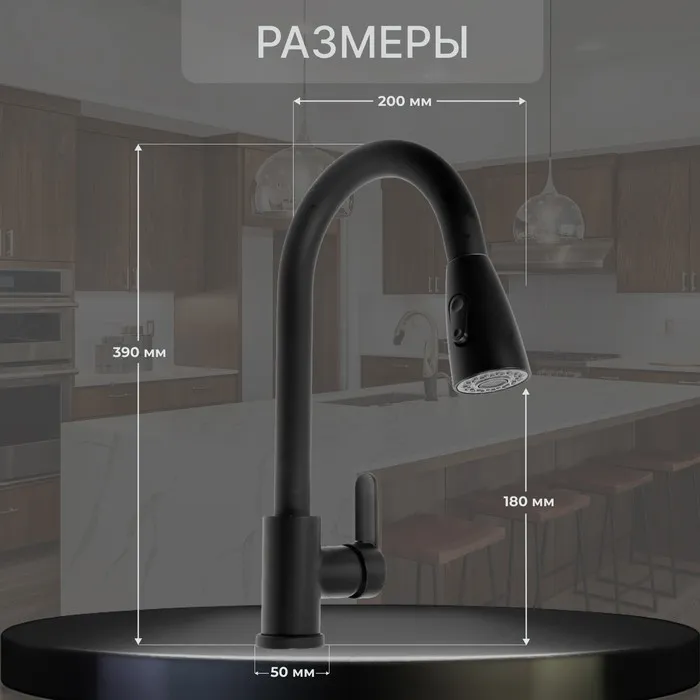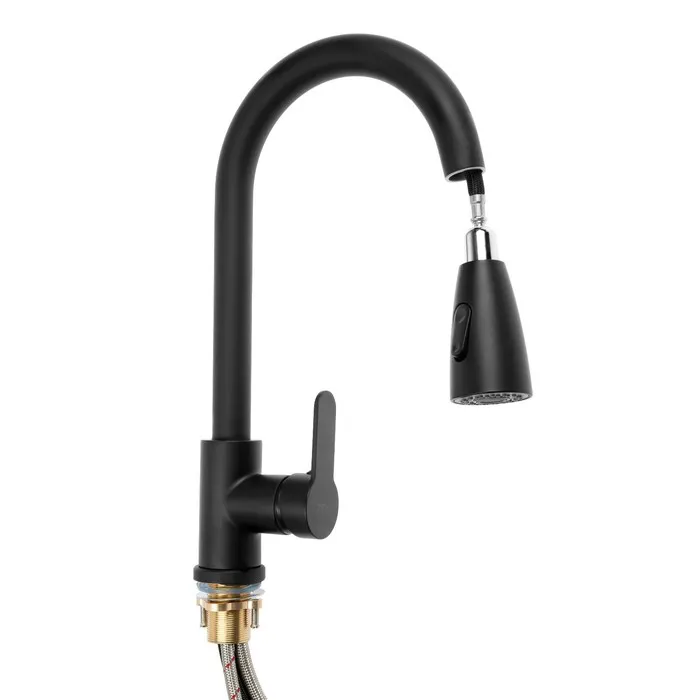Смеситель для кухни ZEIN Z1299, однорычажный, выдвижная лейка, латунь, черный — Характеристики