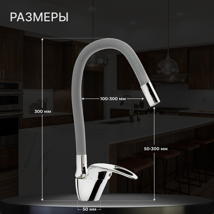Смеситель для кухни ZEIN Z2075G, силиконовый излив, картридж 40 мм, латунь, серый/хром — Характеристики