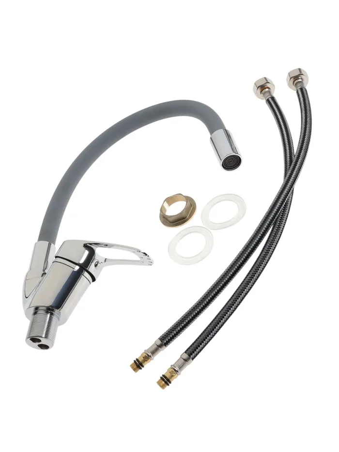 Смеситель для кухни ZEIN Z2115, однорычажный, гибкий излив, картридж 40 мм, серый/хром — Характеристики