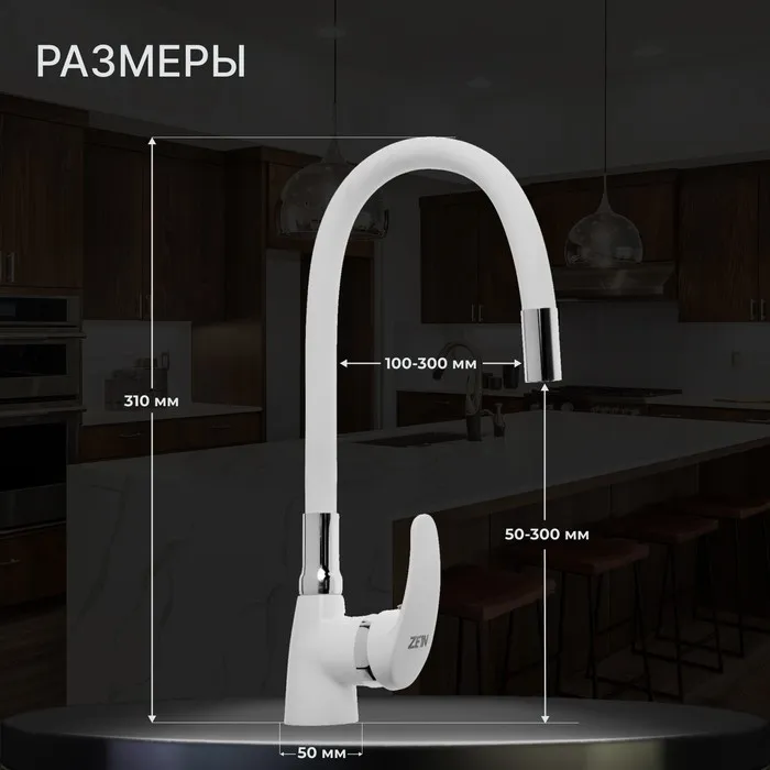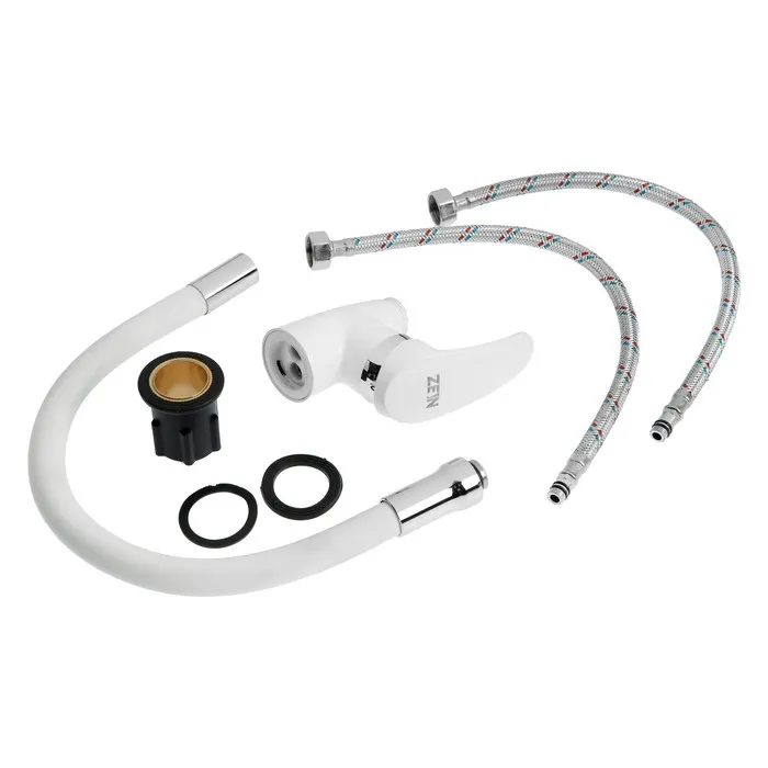 Смеситель для кухни ZEIN Z2229, гибкий силиконовый излив, картридж керамика 40 мм, белый — Характеристики