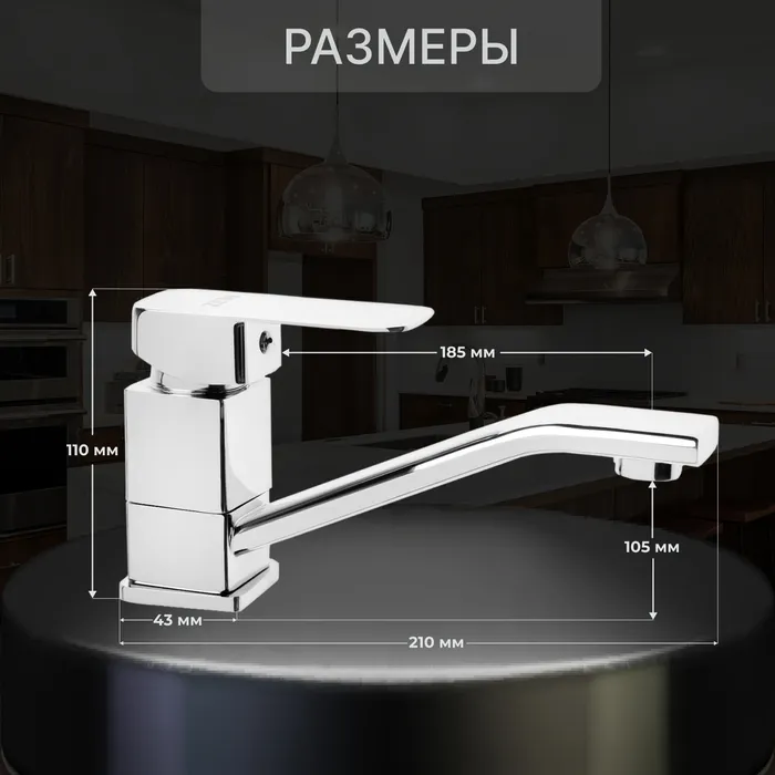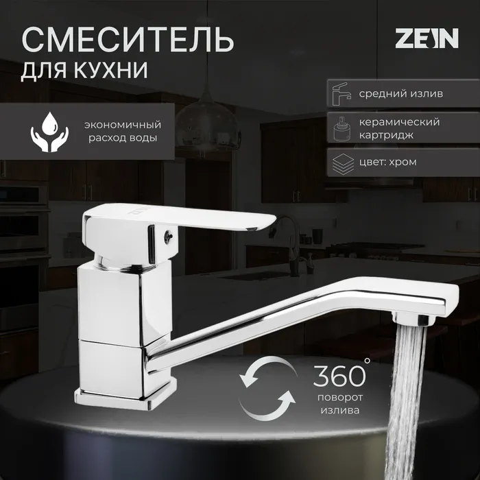 Смеситель для кухни ZEIN Z2482, квадрат, картридж керамика 35 мм, излив 15 см, без подводки — Характеристики