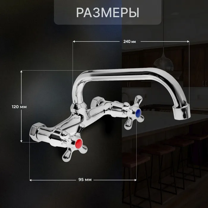 Смеситель для кухни ZEIN Z2485, настенный, излив 20 см, кран-букса латунь 1/2", хром — Характеристики