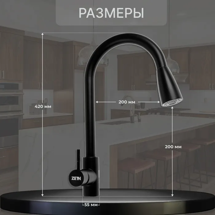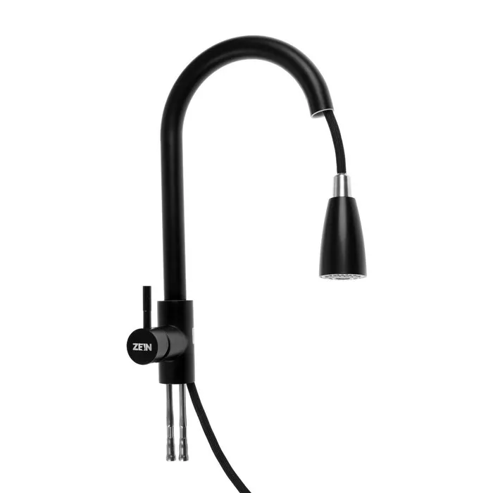 Смеситель для кухни ZEIN Z2571, нержавеющая сталь, с выдвижной лейкой, 2 режима, черный — Характеристики