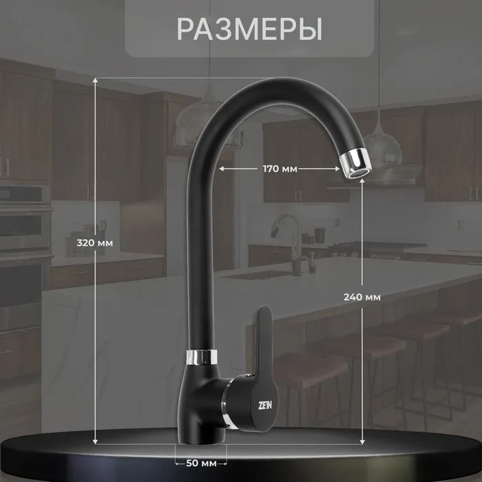 Смеситель для кухни ZEIN Z2630, однорычажный, картридж керамика 40 мм, черный — Характеристики