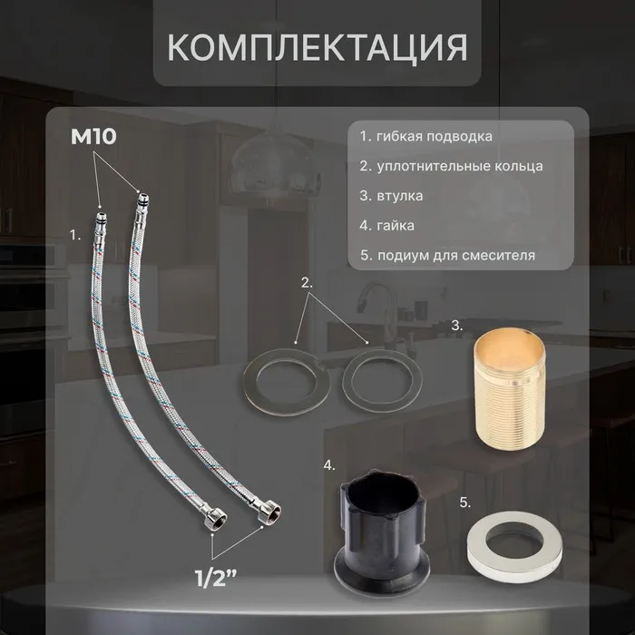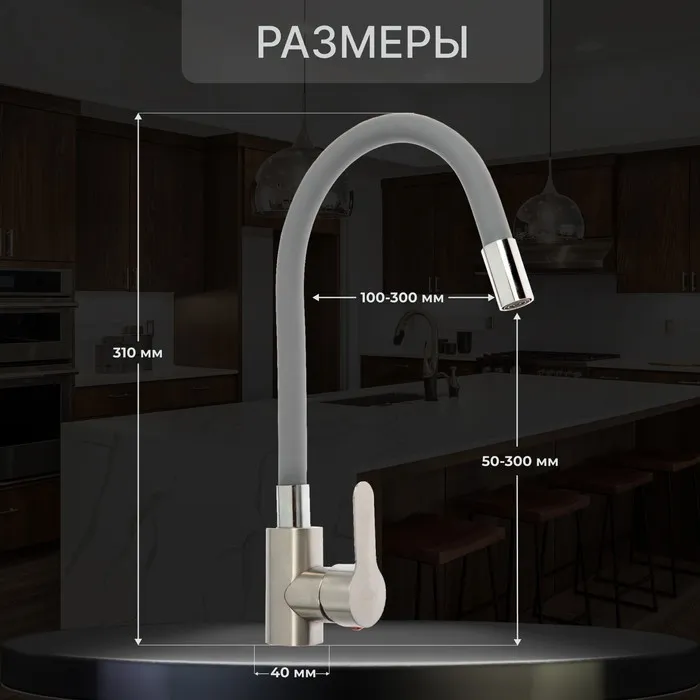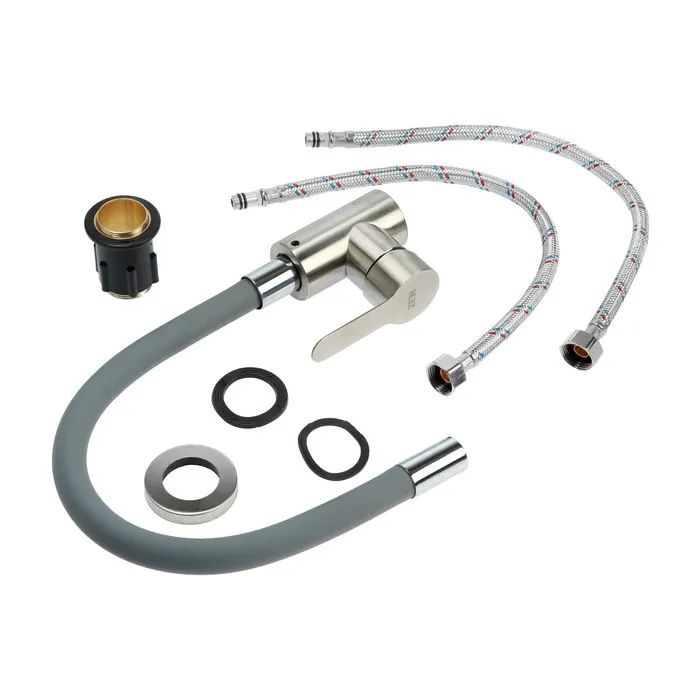 Смеситель для кухни ZEIN Z2753, гибкий излив, картридж 35 мм, нерж. сталь, серый/сатин — Характеристики