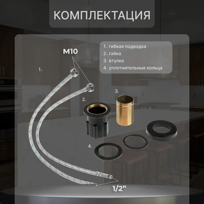 Смеситель для кухни ZEIN Z2754, гибкий силикон излив, картридж 35 мм, нерж. сталь, черный — Характеристики