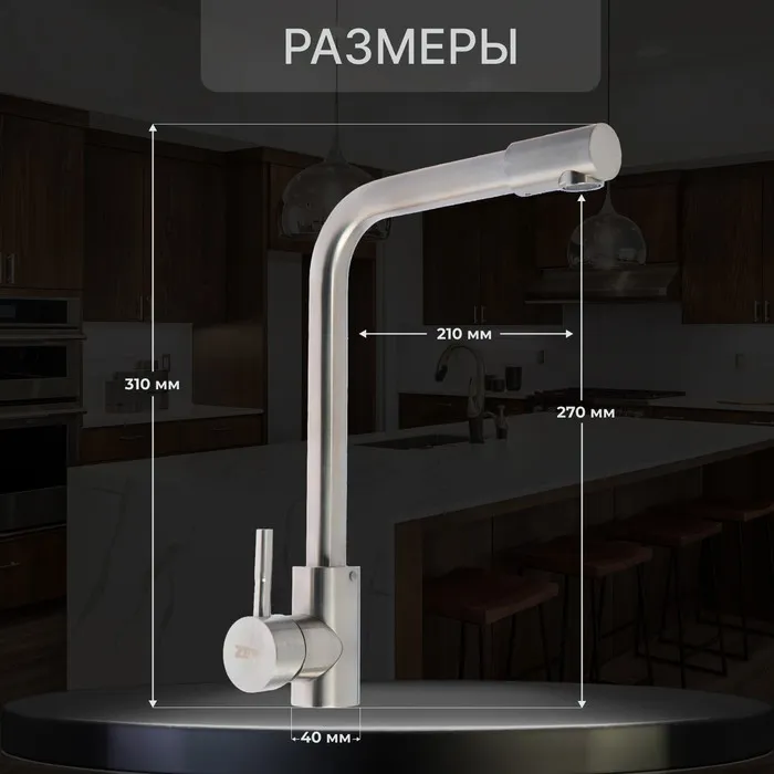 Смеситель для кухни ZEIN Z2939, однорычажный, картридж керамика 35 мм, нерж. сталь, сатин — Характеристики