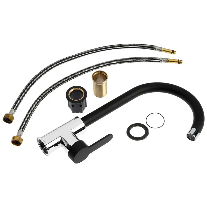 Гибкий излив добавит функциональности смесителю - можно вымыть объемную посуду, дотянуться до труднодоступных мест и любого содержимого мойки.
