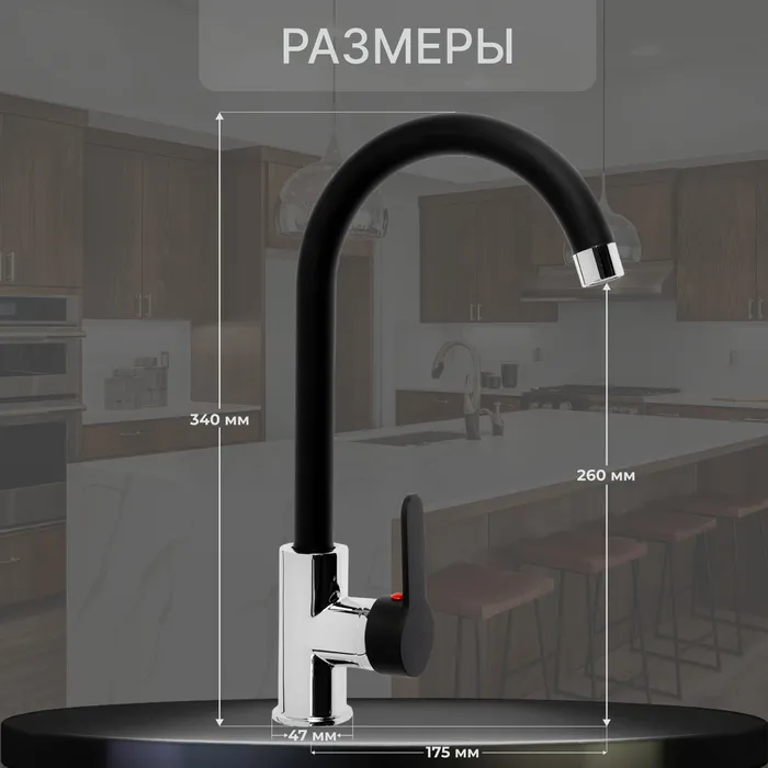 Смеситель для кухни ZEIN Z3353, однорычажный, картридж керамика 35 мм, черный/хром — Характеристики