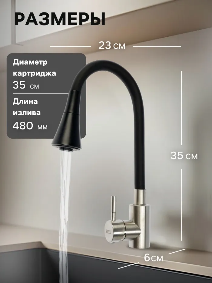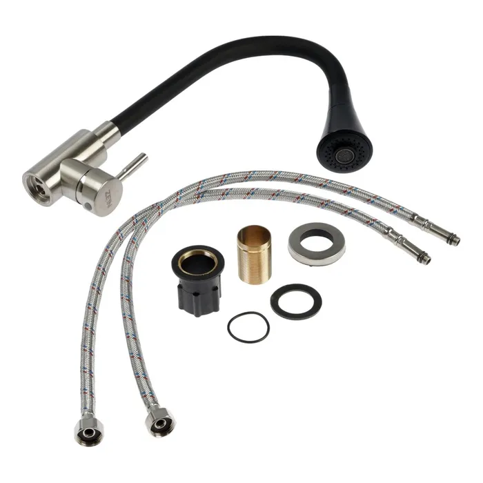 Гибкий излив добавит функциональности смесителю - можно вымыть объемную посуду, дотянуться до труднодоступных мест и любого содержимого мойки.