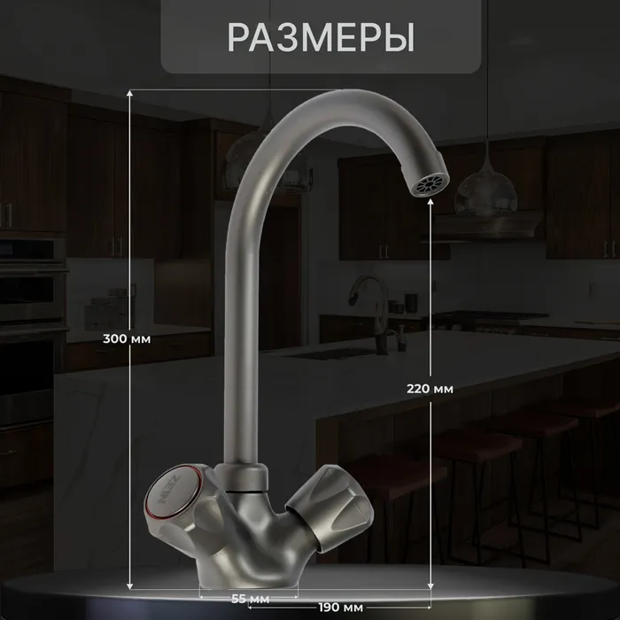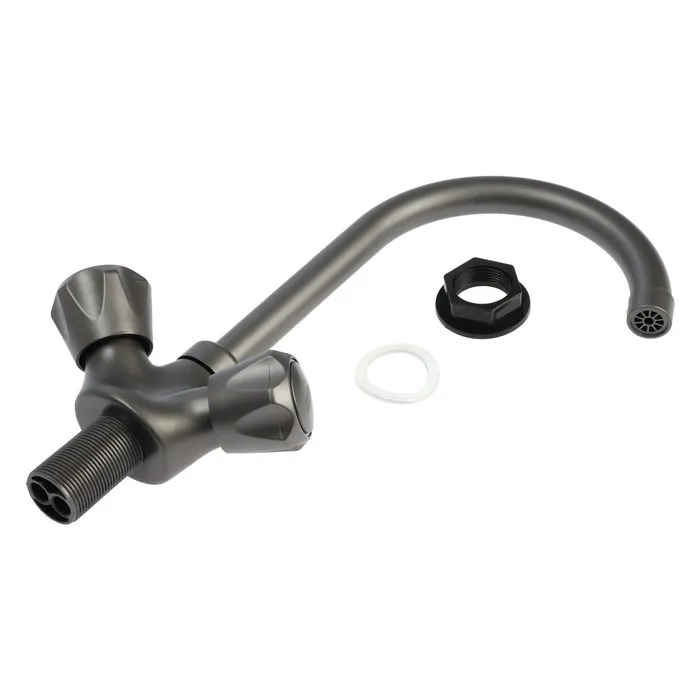 Смеситель для кухни ZEIN Z3664, двухвентильный, высота излива 22 см, ABS-пластик, графит — Характеристики