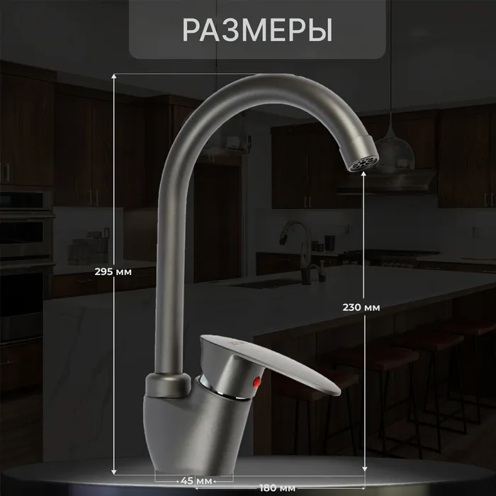 Смеситель для кухни ZEIN Z3667, однорычажный, высота излива 23 см, ABS-пластик, графит — Характеристики