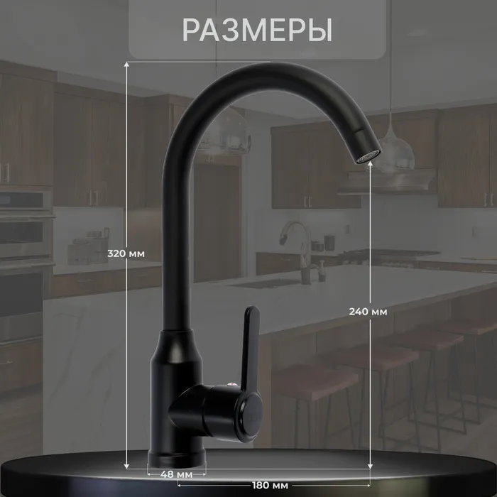 Смеситель для кухни ZEIN Z3699, однорычажный, поворотный излив высотой 26 см, черный — Характеристики