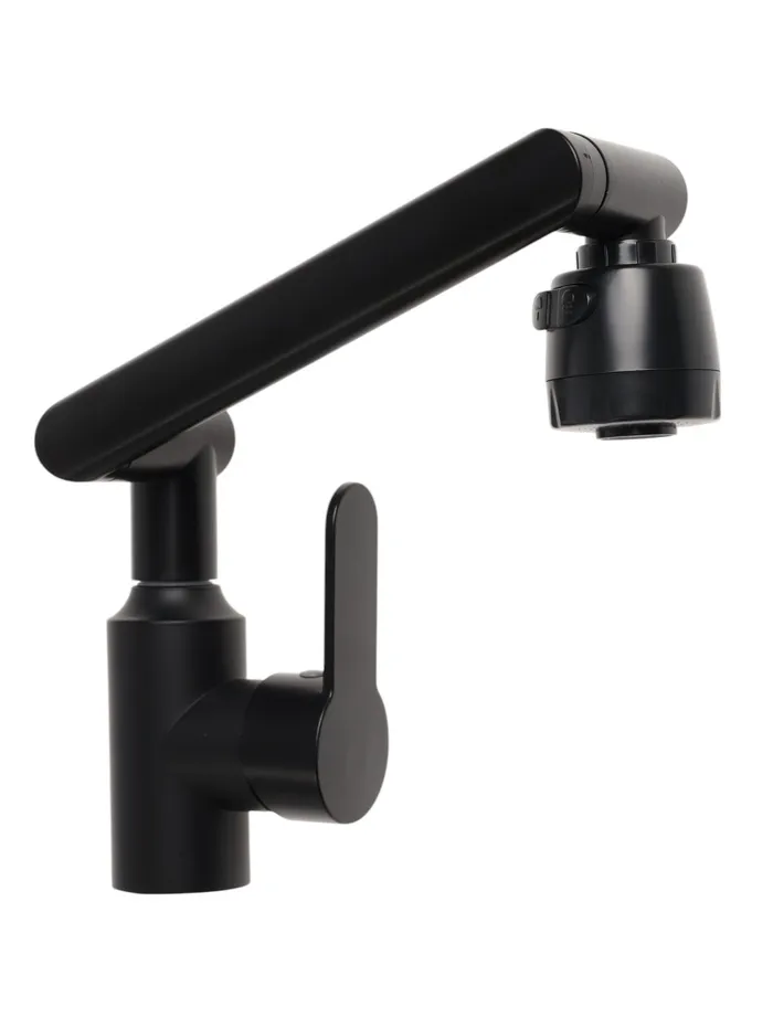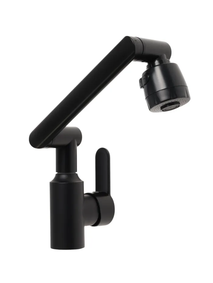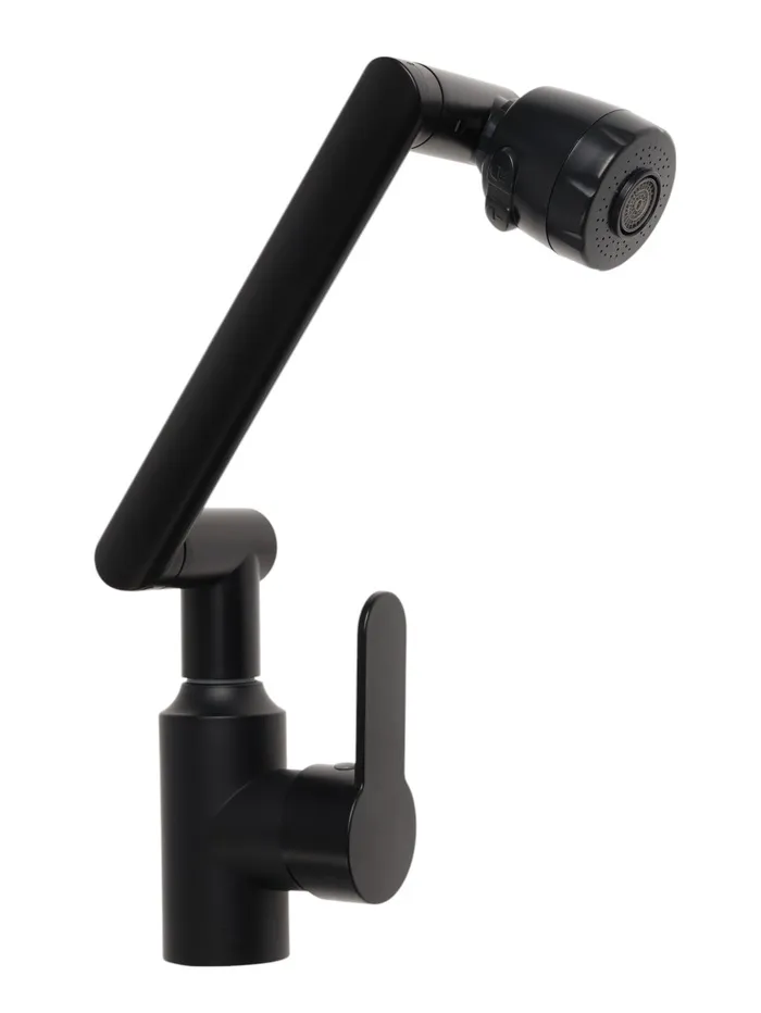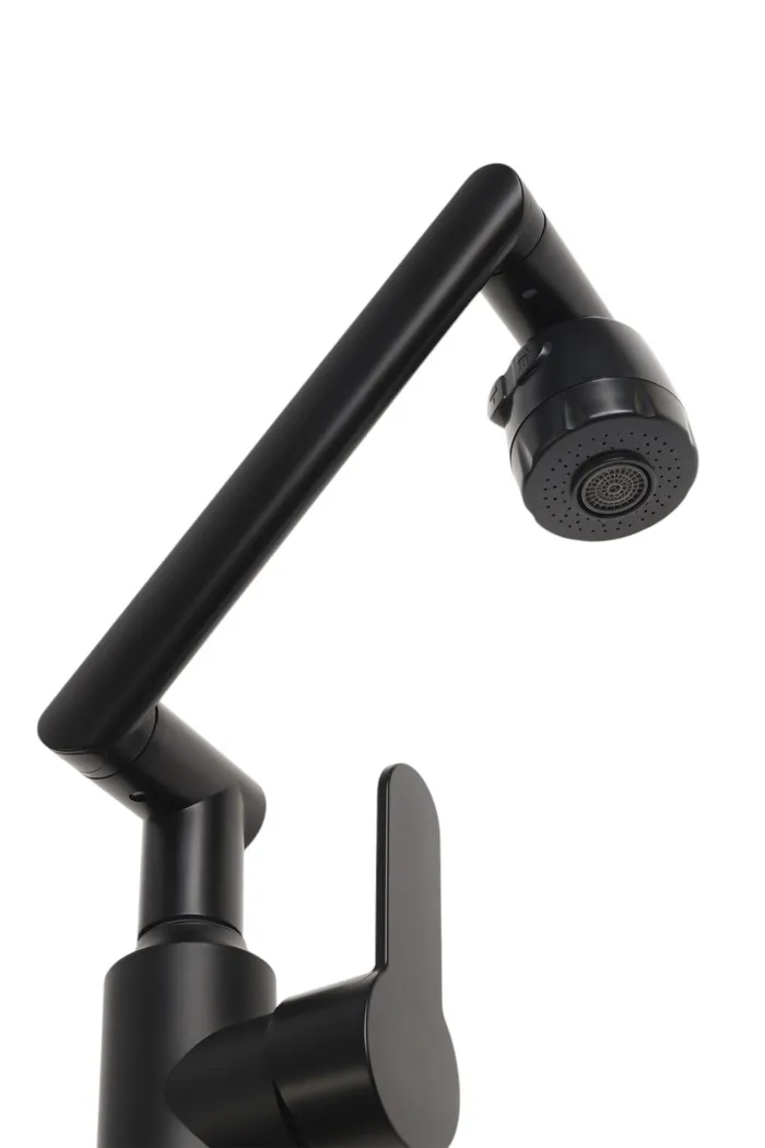 Данный смеситель имеет излив, который поворачивается и крутится в разные стороны на 360 градусов.