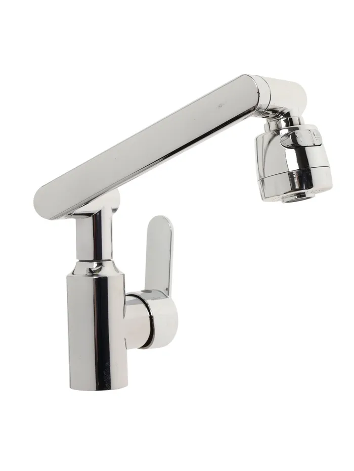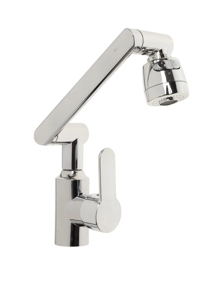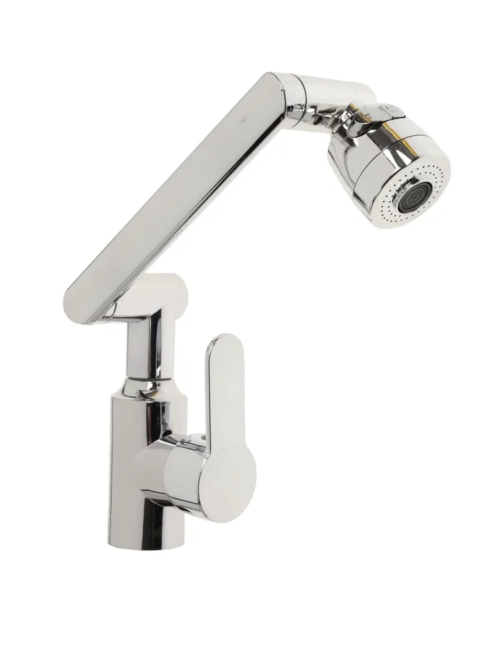 Данный смеситель имеет излив, который поворачивается и крутится в разные стороны на 360 градусов.