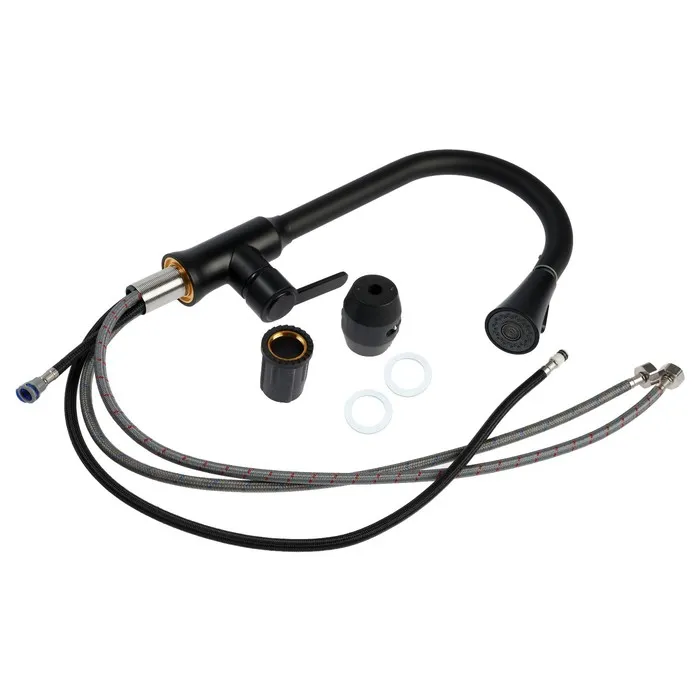 Смеситель для кухни ZEIN Z3708, вытяжной излив, аэратор 2 режима, черный — Характеристики