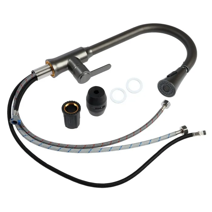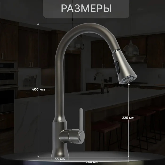 Вытяжной излив добавит функциональности смесителю - можно вымыть объемную посуду, дотянуться до труднодоступных мест и любого содержимого мойки.