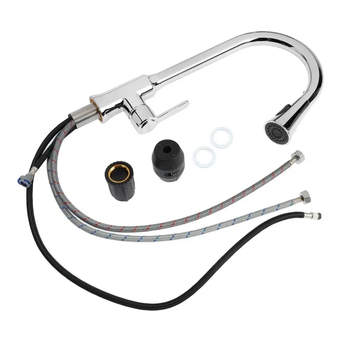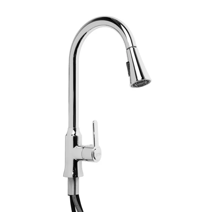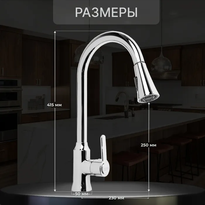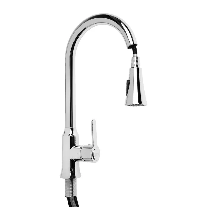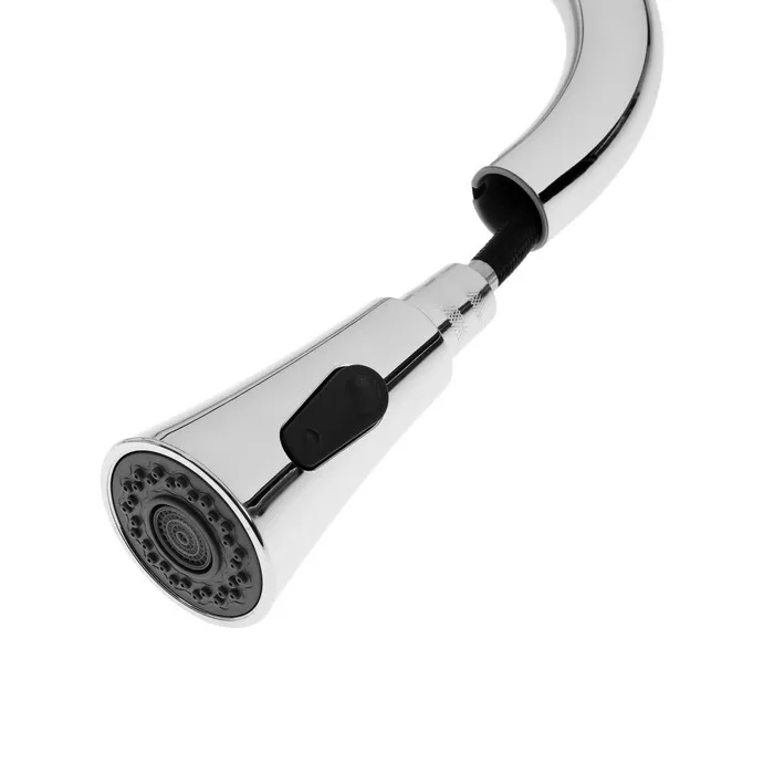 Вытяжной излив добавит функциональности смесителю - можно вымыть объемную посуду, дотянуться до труднодоступных мест и любого содержимого мойки.