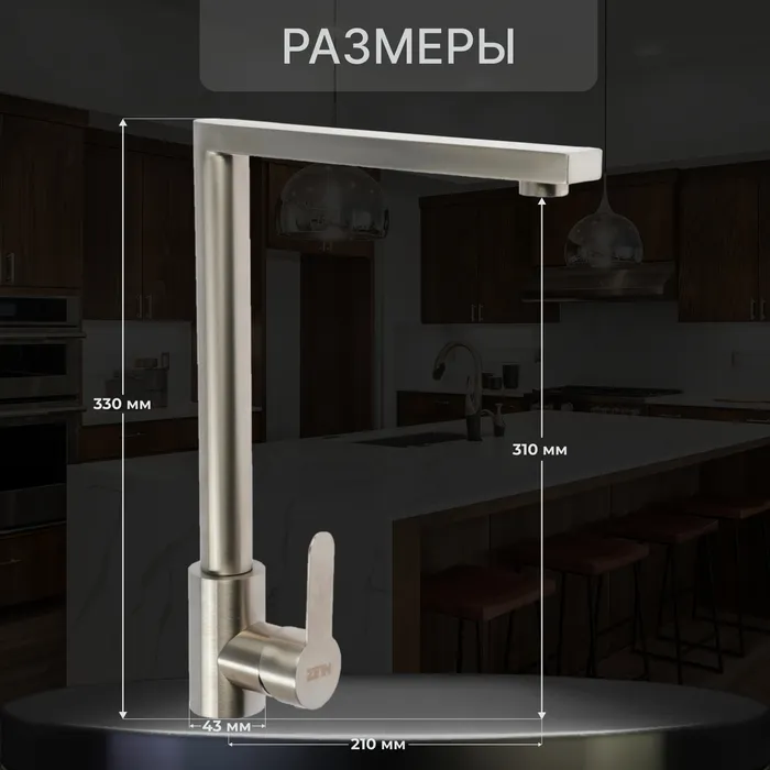 Смеситель для кухни ZEIN Z3735, однорычажный, высота излива 30 см, сатин — Характеристики