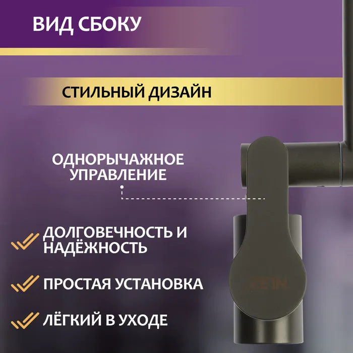 Интерьерный смеситель для кухни ZEIN предназначен для установки на горизонтальной поверхности — кухонной мойке или столешнице.