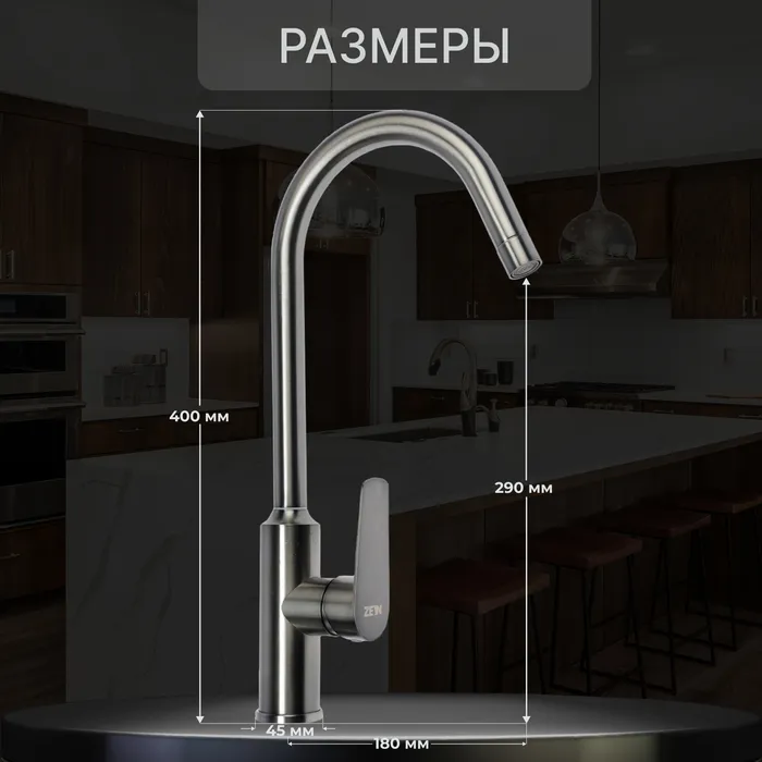 Смеситель для кухни ZEIN предназначен для установки на горизонтальной поверхности — кухонной мойке или столешнице.