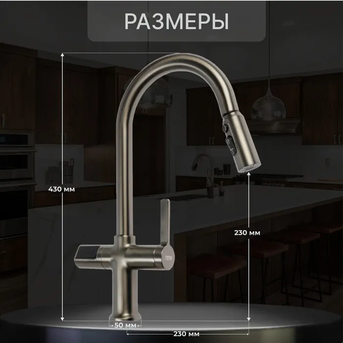 Смеситель для кухни ZEIN предназначен для установки на горизонтальной поверхности — кухонной мойке или столешнице.