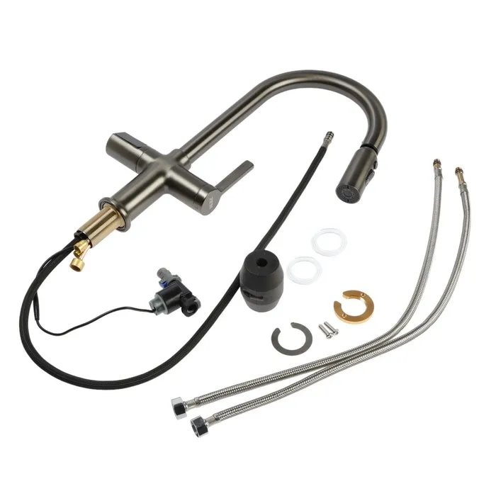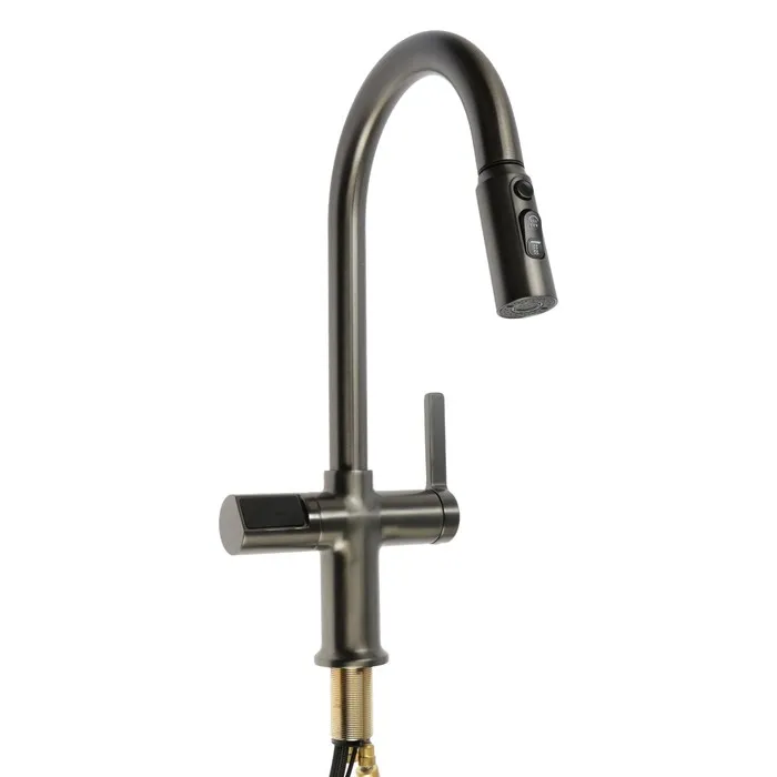 Аэратор может вытягиваться и имеет три режима подачи воды, что делает его более удобным и многофункциональным.