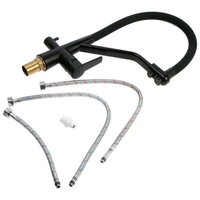 Смеситель для кухни ZEIN Z5972, с выходом для питьевой воды, гибкий излив, латунь, черный — Характеристики