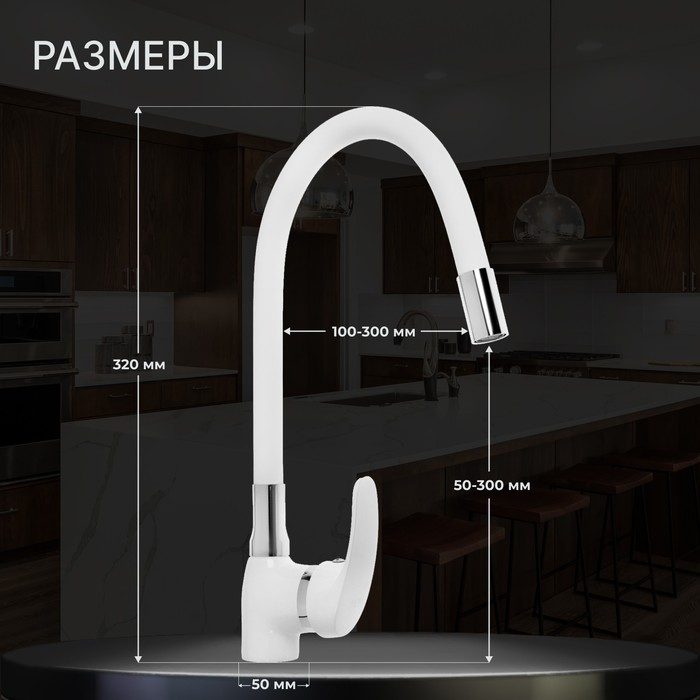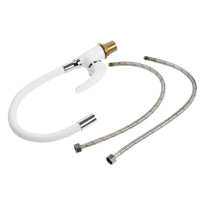 Смеситель для кухни ZEIN Z5973, гибкий силиконовый излив, картридж 40 мм, латунь, белый — Характеристики