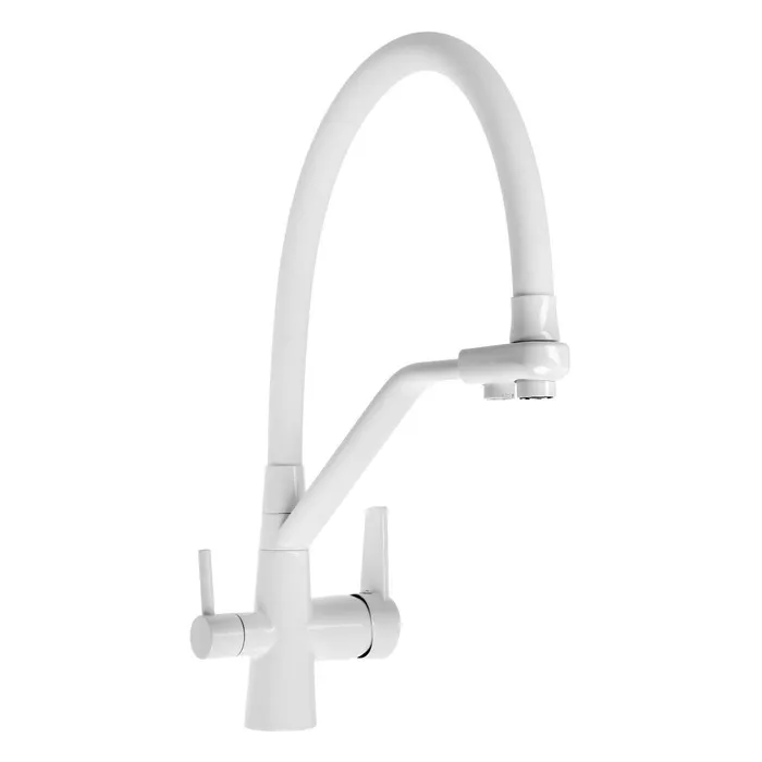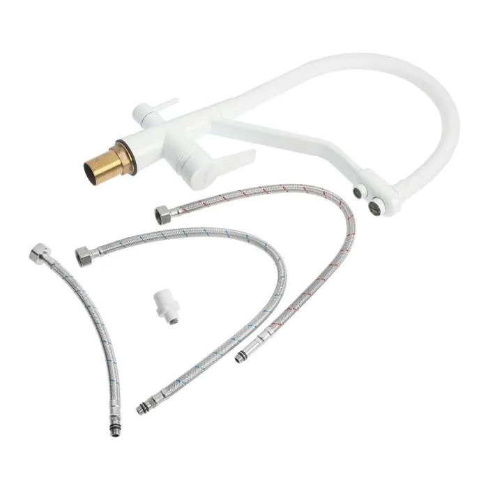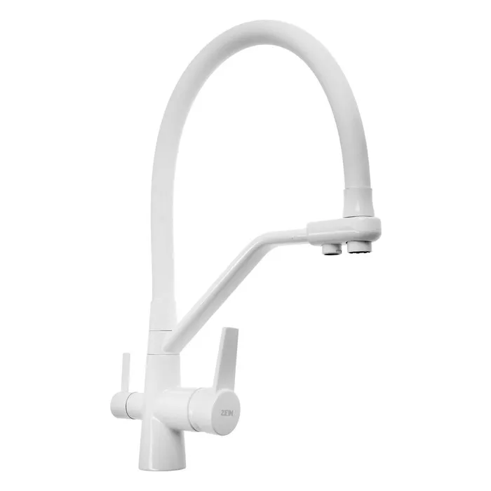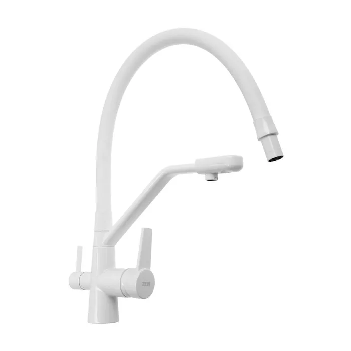 Смеситель для кухни ZEIN Z6973, выход для питьевой воды, силиконовый излив, латунь, белый