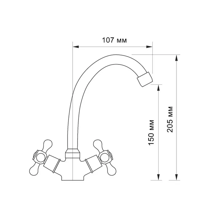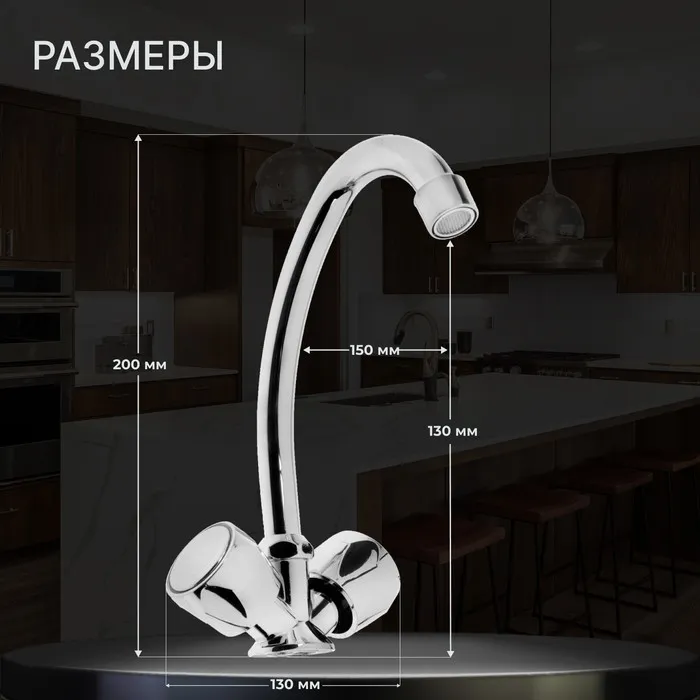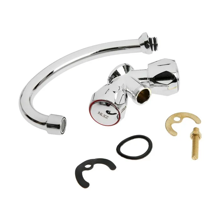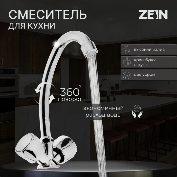 Смеситель для кухни ZEIN Z80102, двухвентильный, кран-букса латунь 1/2", без подводки, хром — Характеристики