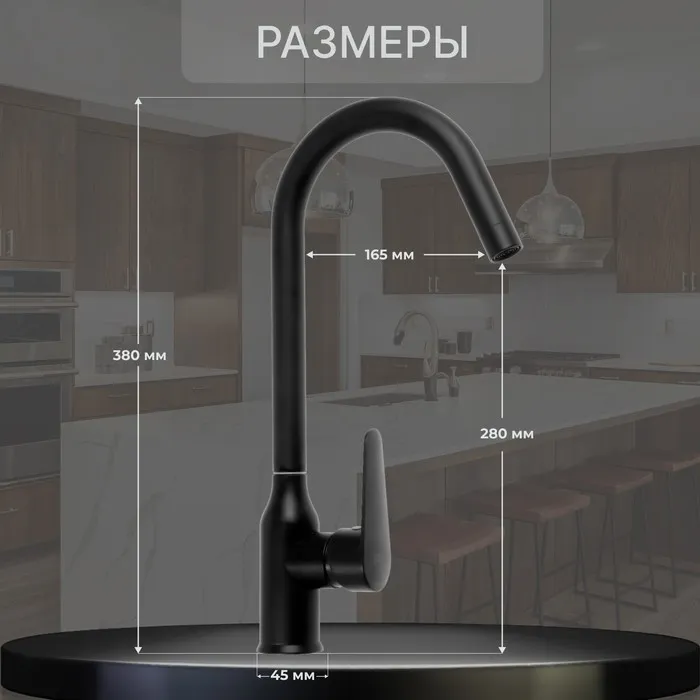 Смеситель для кухни ZEIN Z86, однорычажный, картридж керамика 40 мм, нерж. сталь, черный — Характеристики