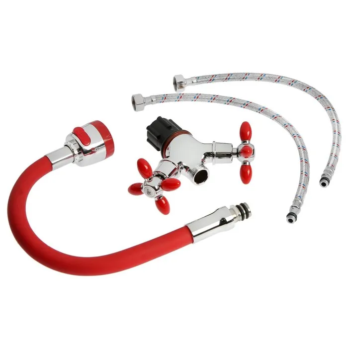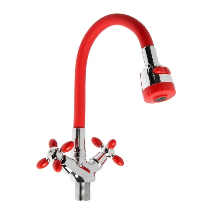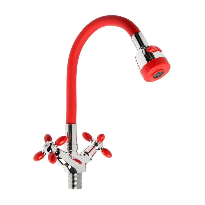 Смеситель для кухни ZEIN ZC2026, гибкий силикон излив, кран-букса латунь 1/2", красный/хром — Характеристики