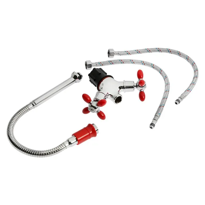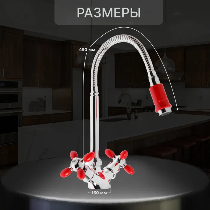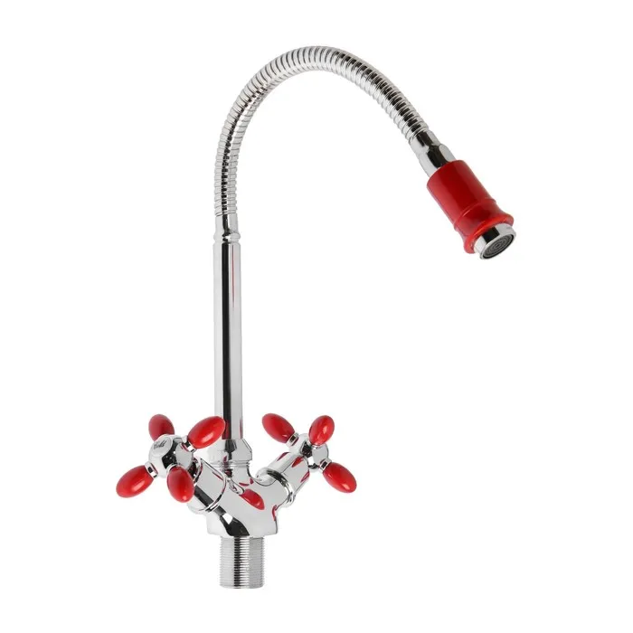 Смеситель для кухни ZEIN ZC2027, гибкий излив, кран-букса латунь 1/2", красный/хром — Характеристики