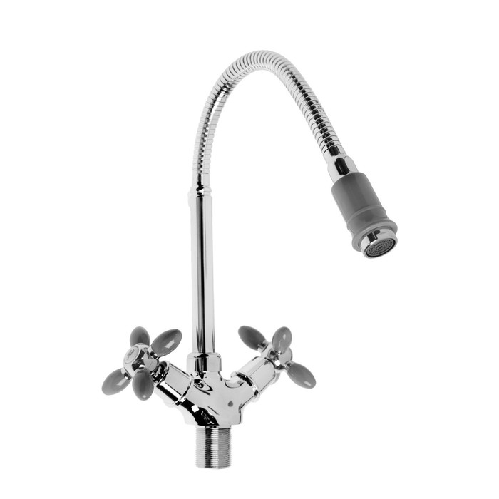 Смеситель для кухни ZEIN ZC2031, гибкий излив, кран-букса латунь 1/2", серый/хром — Характеристики