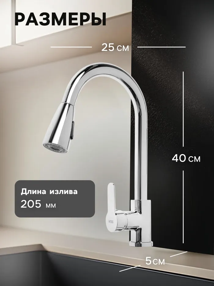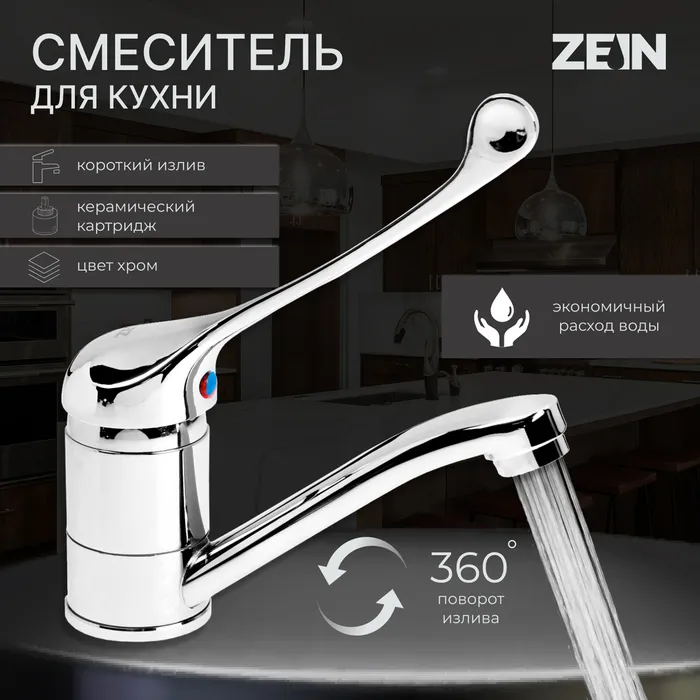 Смеситель для кухни ZEIN ZC2037, локтевой, картридж 35 мм, излив 15 см, без подводки, хром — Характеристики