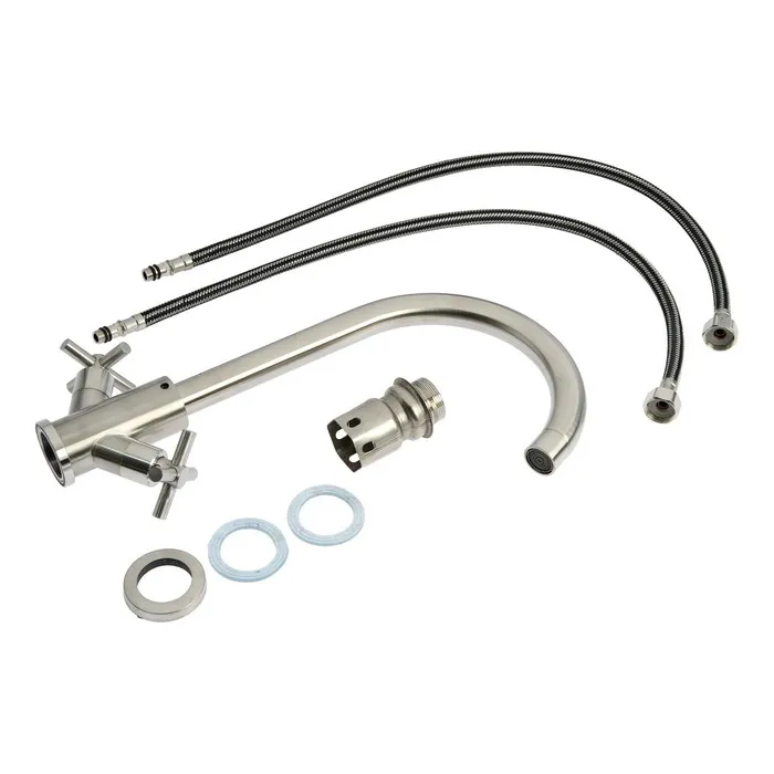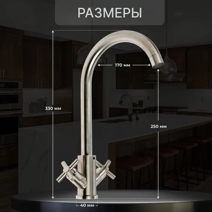 Смеситель для кухни ZEIN ZS13, кран-букса латунь 1/2", нержавеющая сталь, сатин — Характеристики
