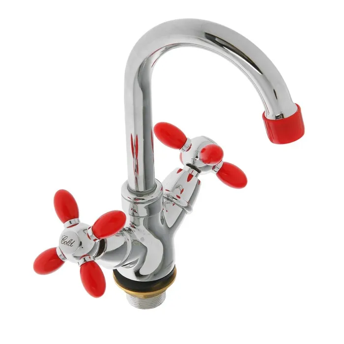 Смеситель для раковины Accoona A9482N, двухвентильный, с гайкой, силумин, красный/хром — Характеристики