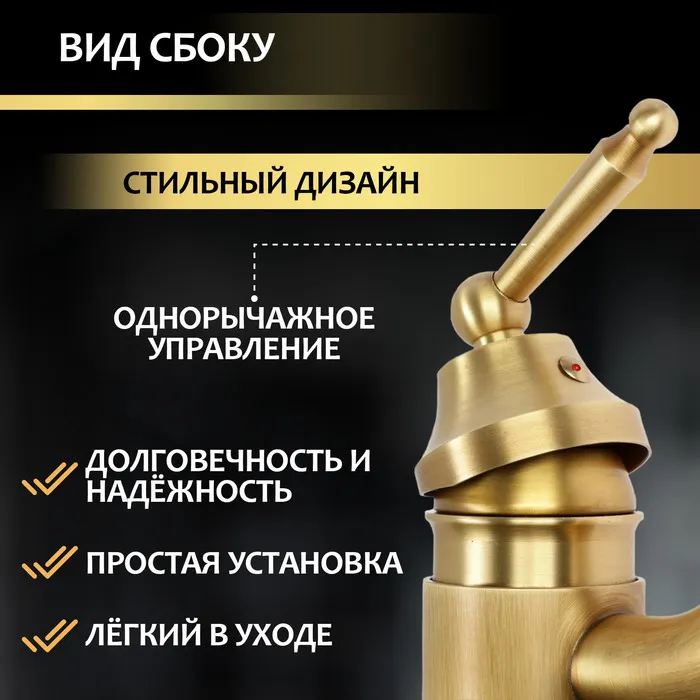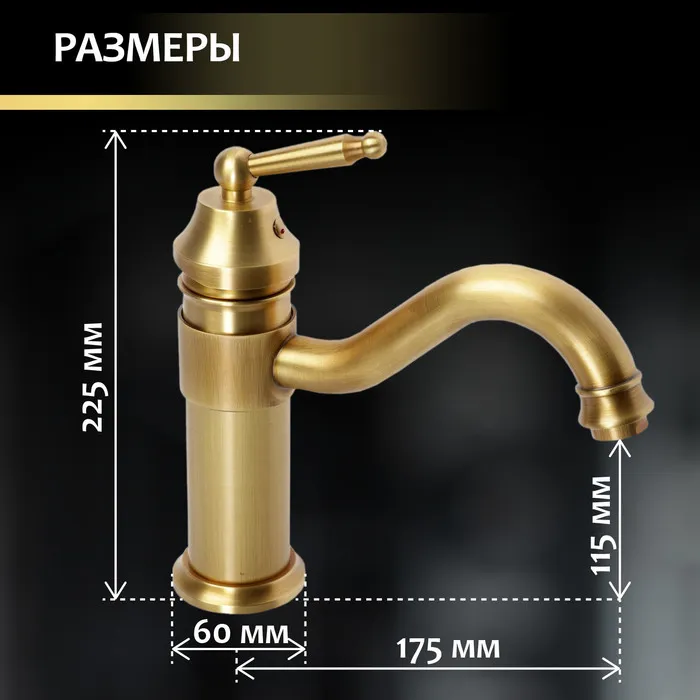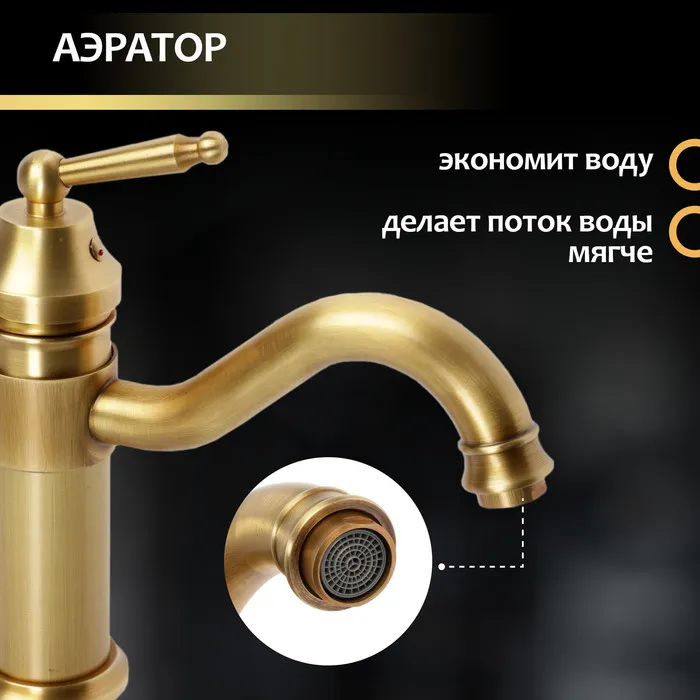 Смеситель для раковины ZEIN Ретро, изогнутый излив, без подводки, латунь, цвет бронза — Характеристики