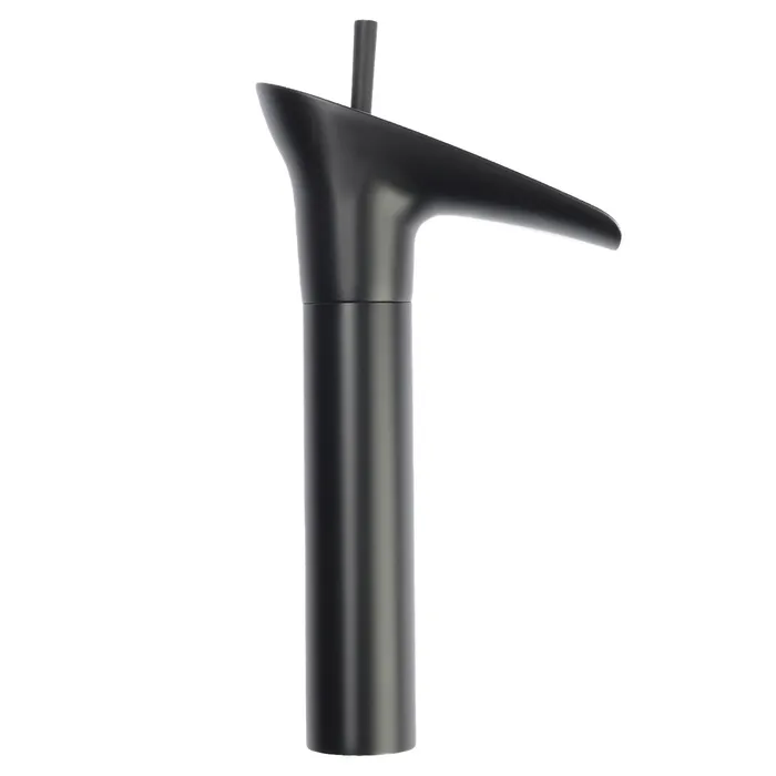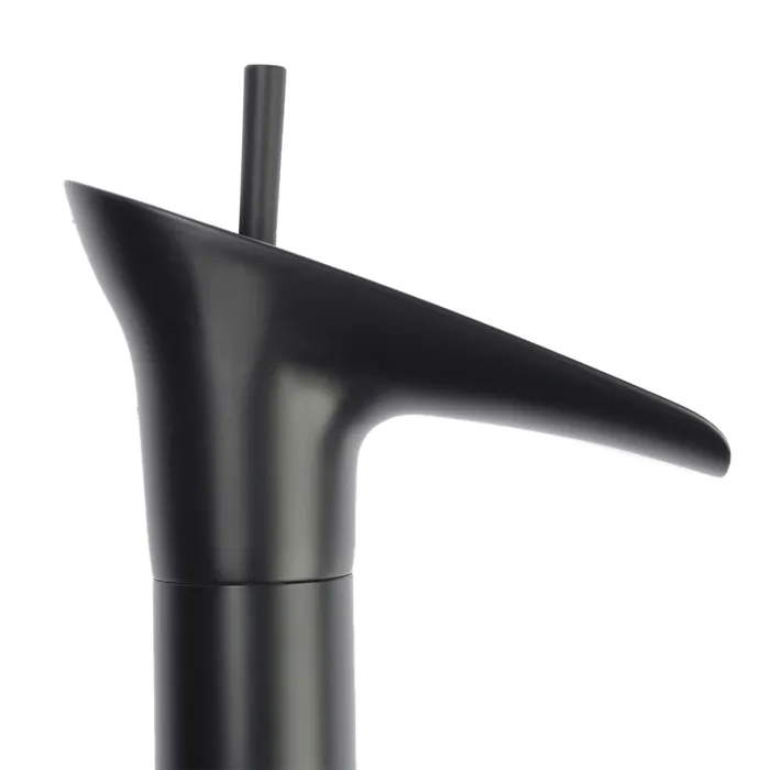 Высокий каскадный излив не только привлекает внимание своей уникальной конструкцией, но и обеспечивает комфортное использование, позволяя воде свободно и красиво стекать в раковину.