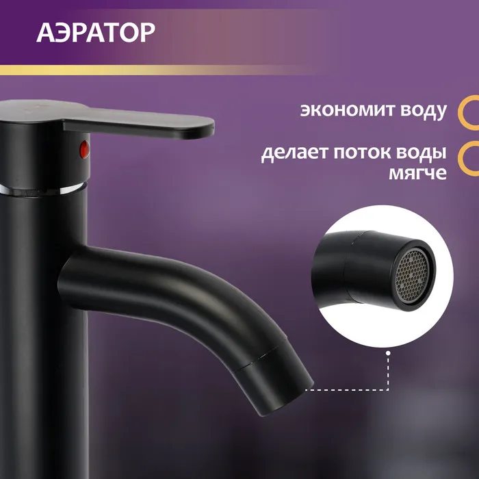 Смеситель для раковины ZEIN Z3653, однорычажный, высота излива 8 см, ABS-пластик, черный — Характеристики